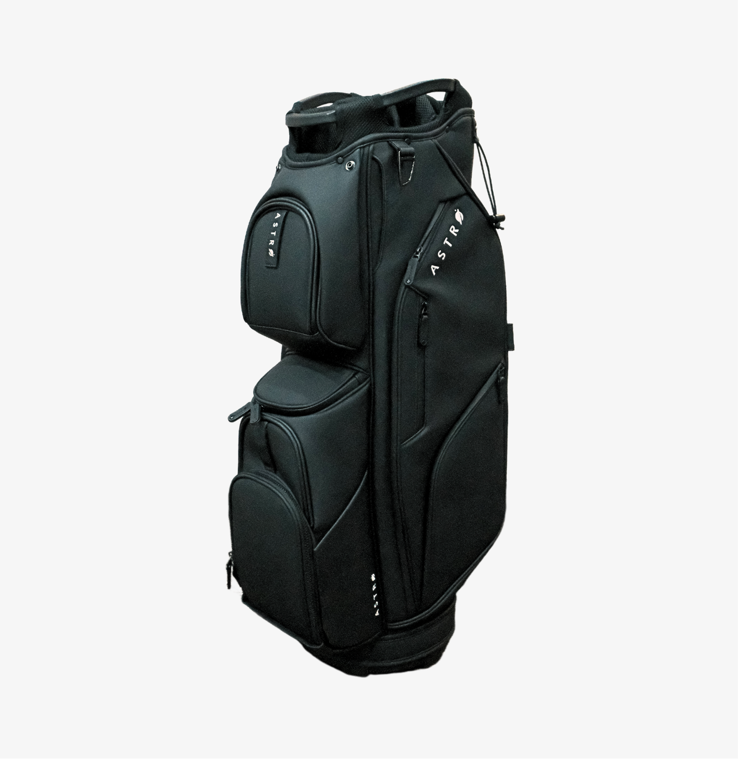 It elevates your game with this premium synthetic leather golf bag! It's durable, water-resistant, and wrinkle-free. Featuring multiple front and side pockets, including two magnetic ones and a cold drink pocket. Comes with a rain cover and comfortable shoulder strap.